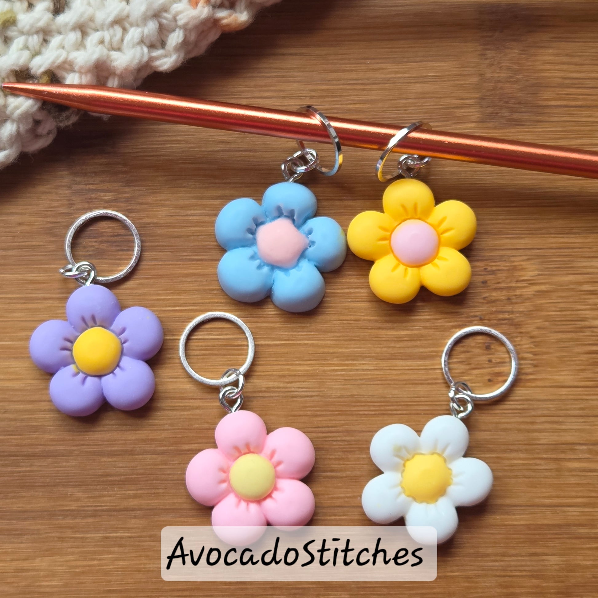 BABY DAISIES – 5 Pieces / Knitting Crochet Stitch Markers / Notions