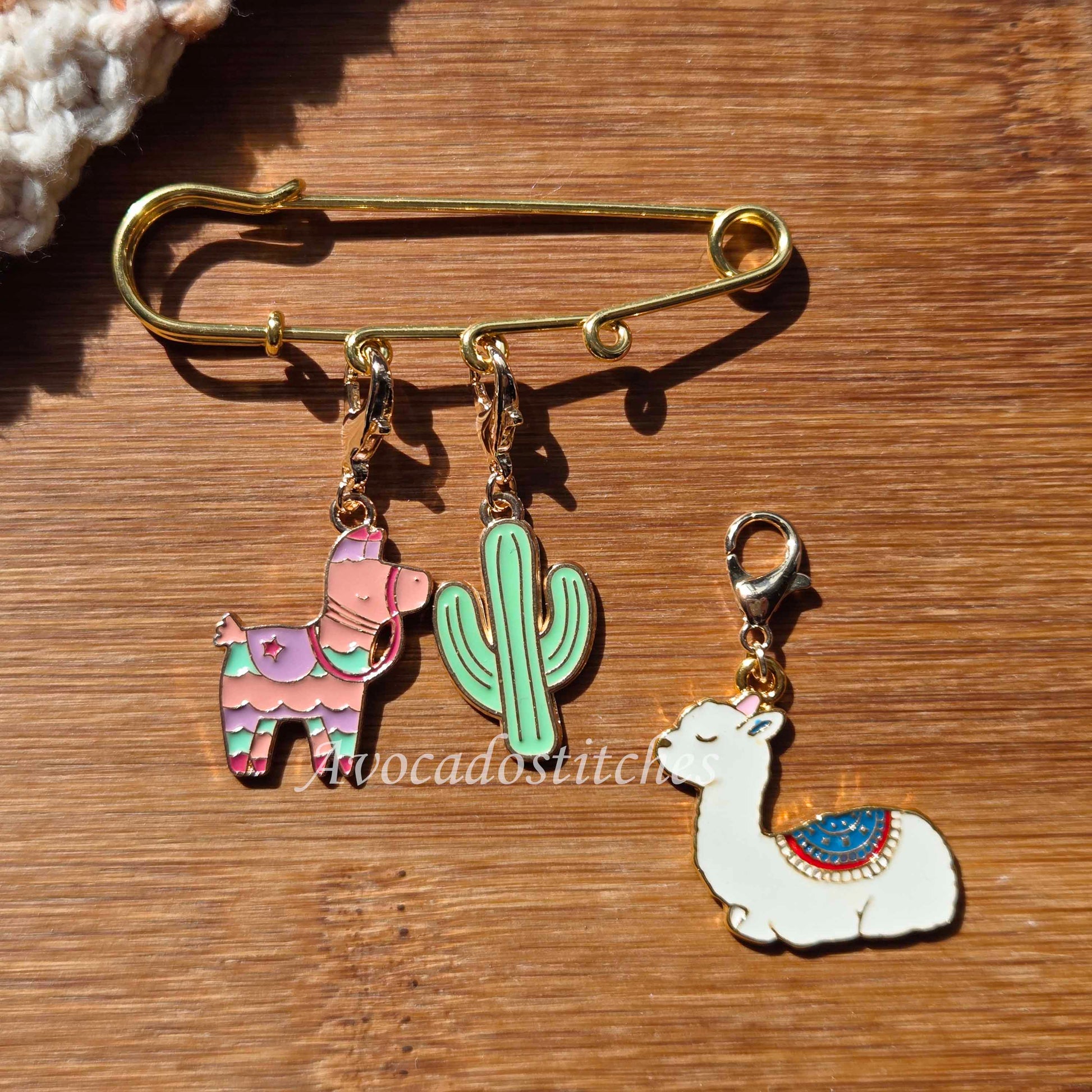 🐫 3 Removable Stitch Markers with charms (zinc alloy, with lobster clasps; fit up to 4.5mm knitting needles)