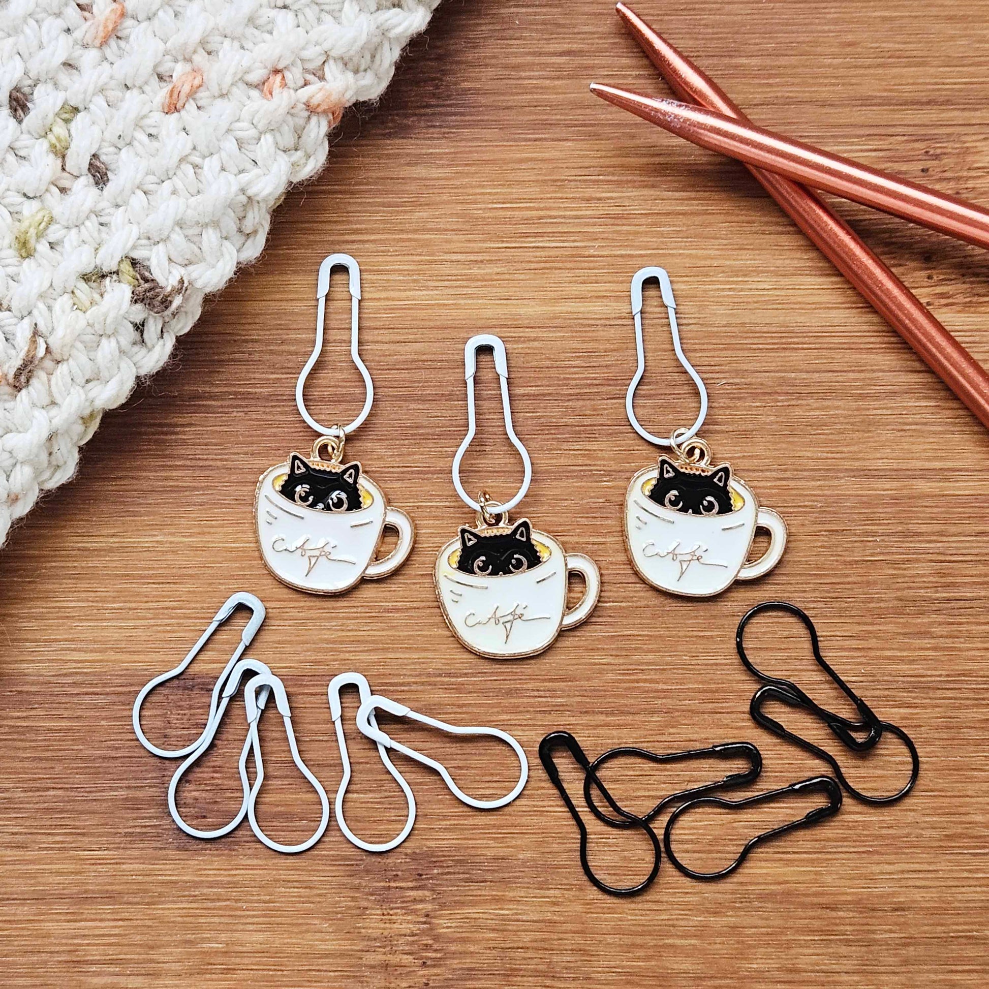 CAT in a CUP / 13 pcs / Knitting Crochet Stitch Marker / Removable Stitch Markers / Notions