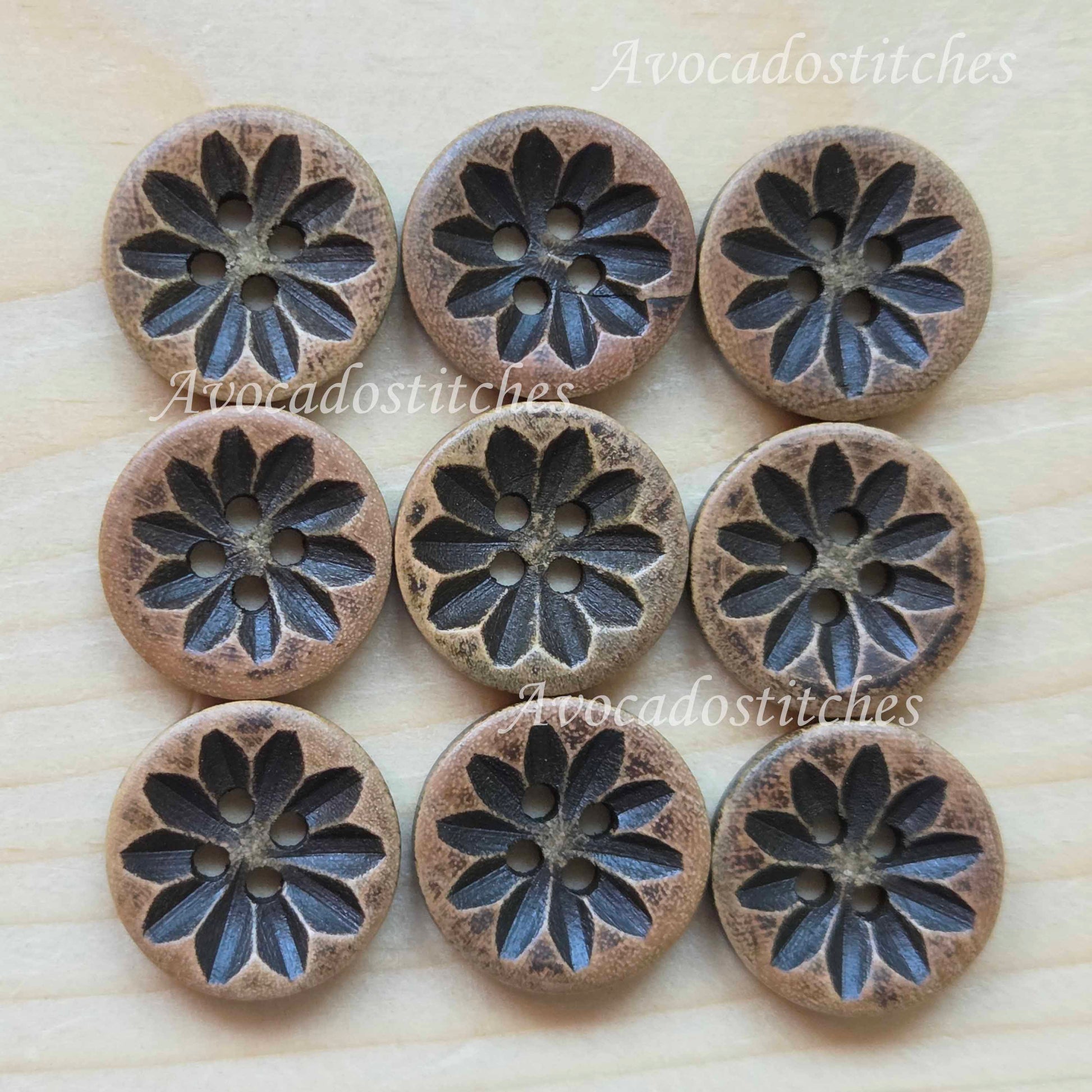 CHESTNUT FLEUR / 18mm - 6 buttons / Imitation Wooden Buttons / Resin Buttons / Sewing Buttons