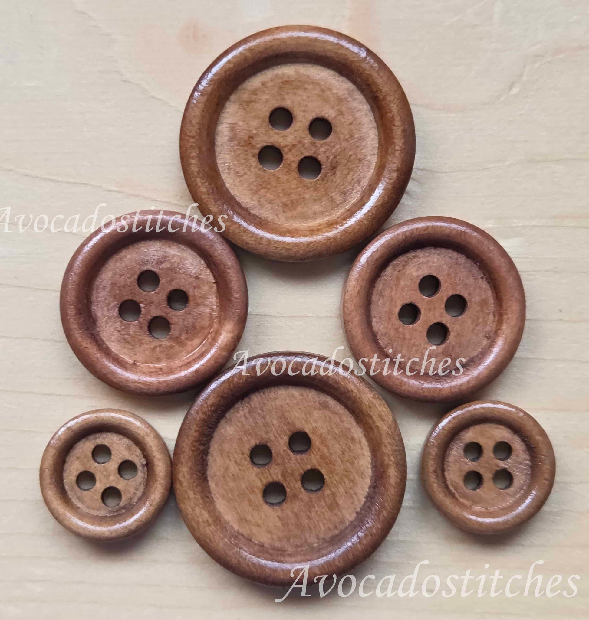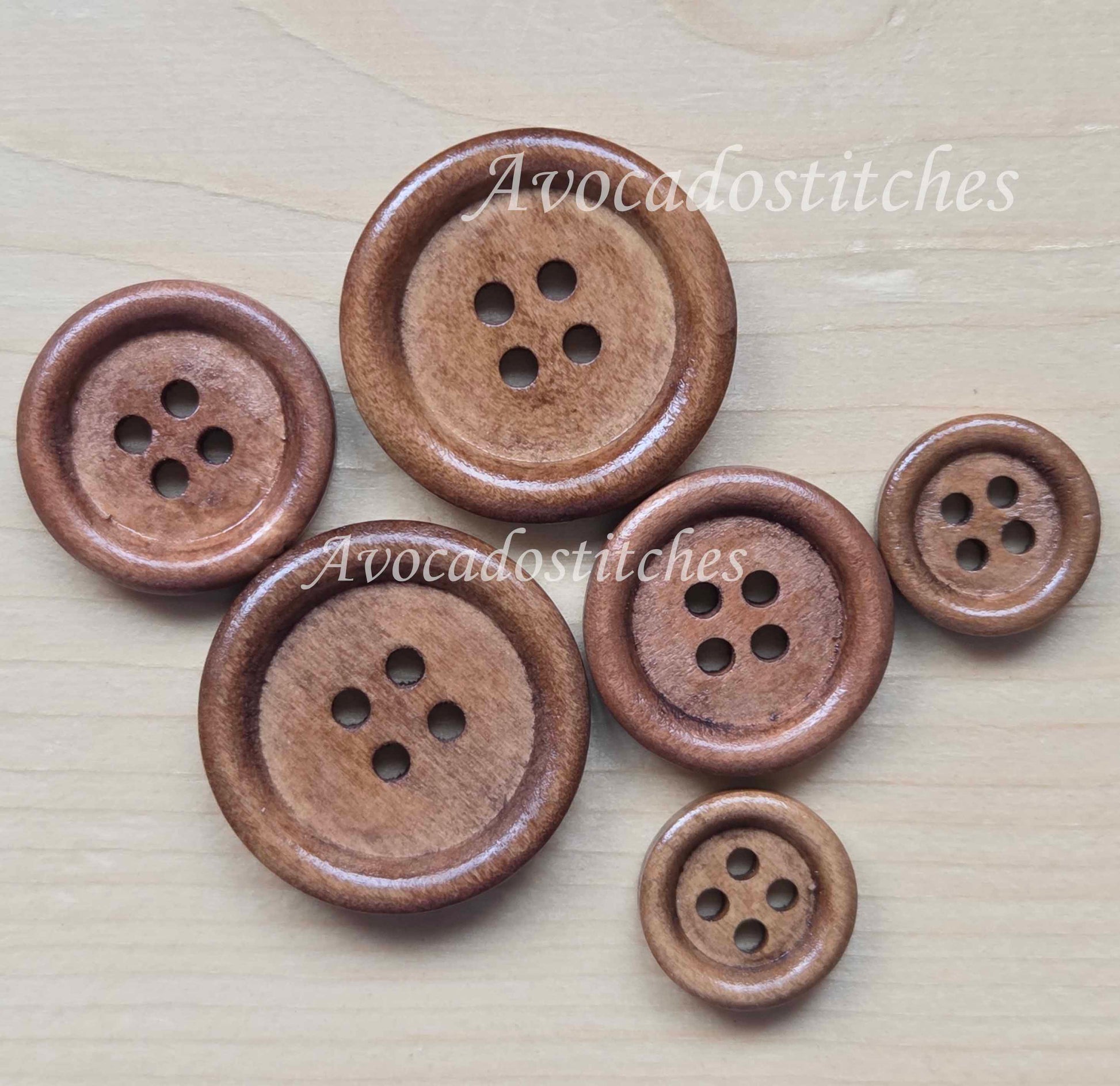 4-HOLE BROWN / 12.5-25mm / Set of 10 buttons / Wooden Buttons / Sewing Buttons