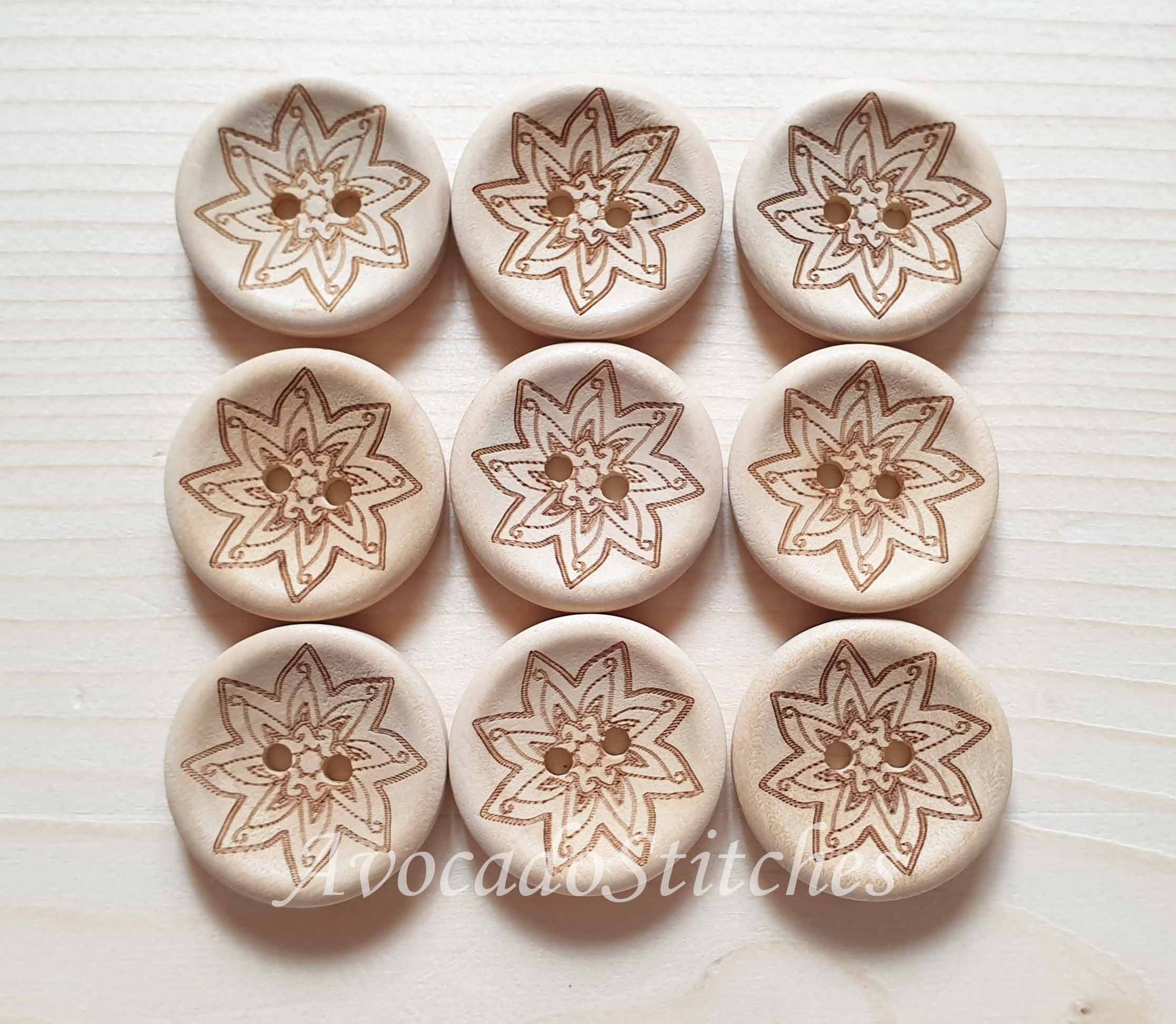 AvoDesigns MANDALA STARFLOWER / 25mm - 6 buttons / Wooden Buttons / Unvarnished / Sewing Buttons