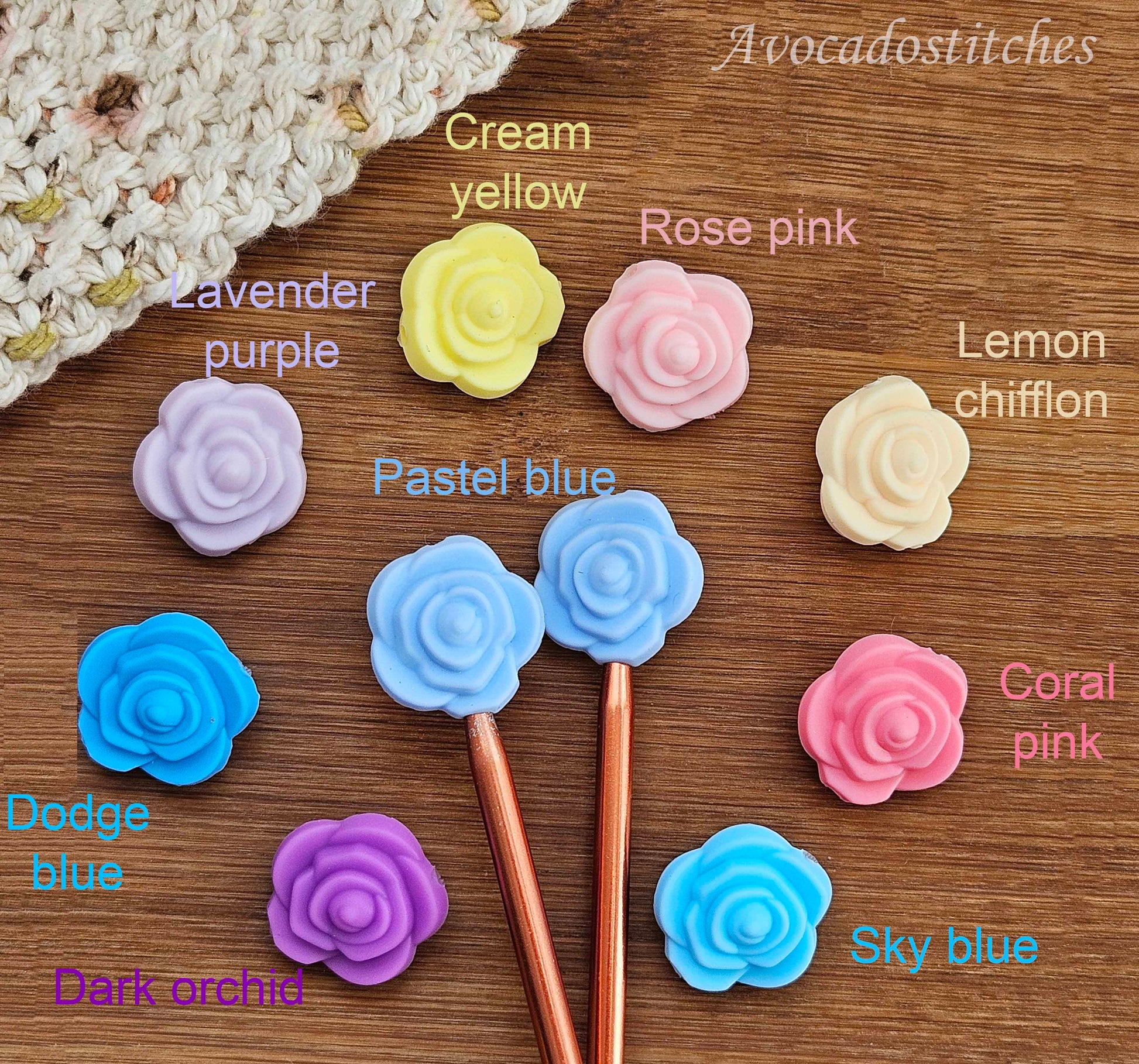 ROSE STITCH STOPPERS / 2 pieces / Knitting Needle Stoppers / Point Protection / Notions