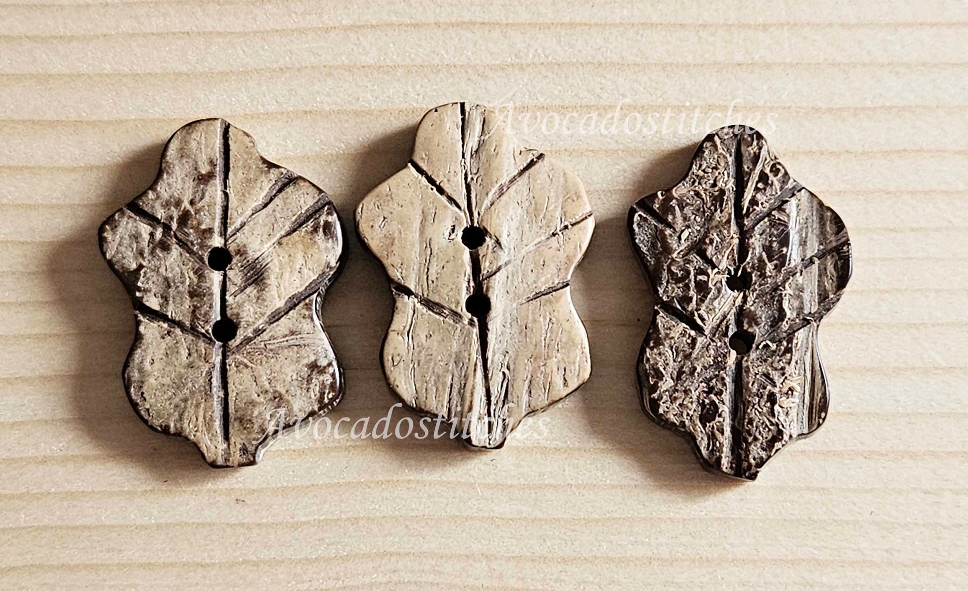 COCO FALLEN LEAF / 30*22mm - 3 buttons / Coconut Buttons / Sewing Buttons