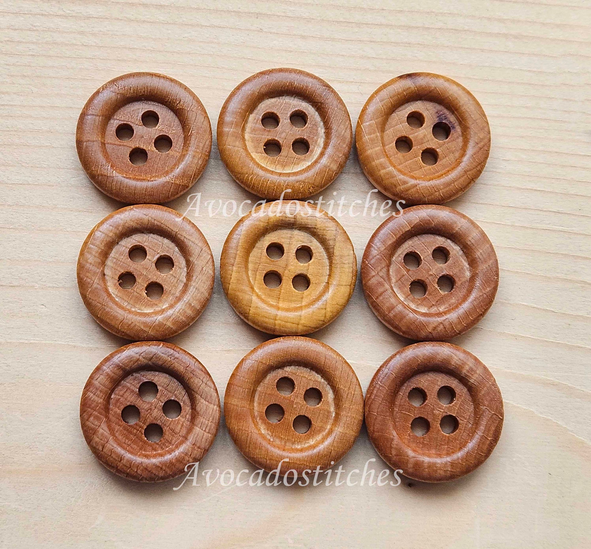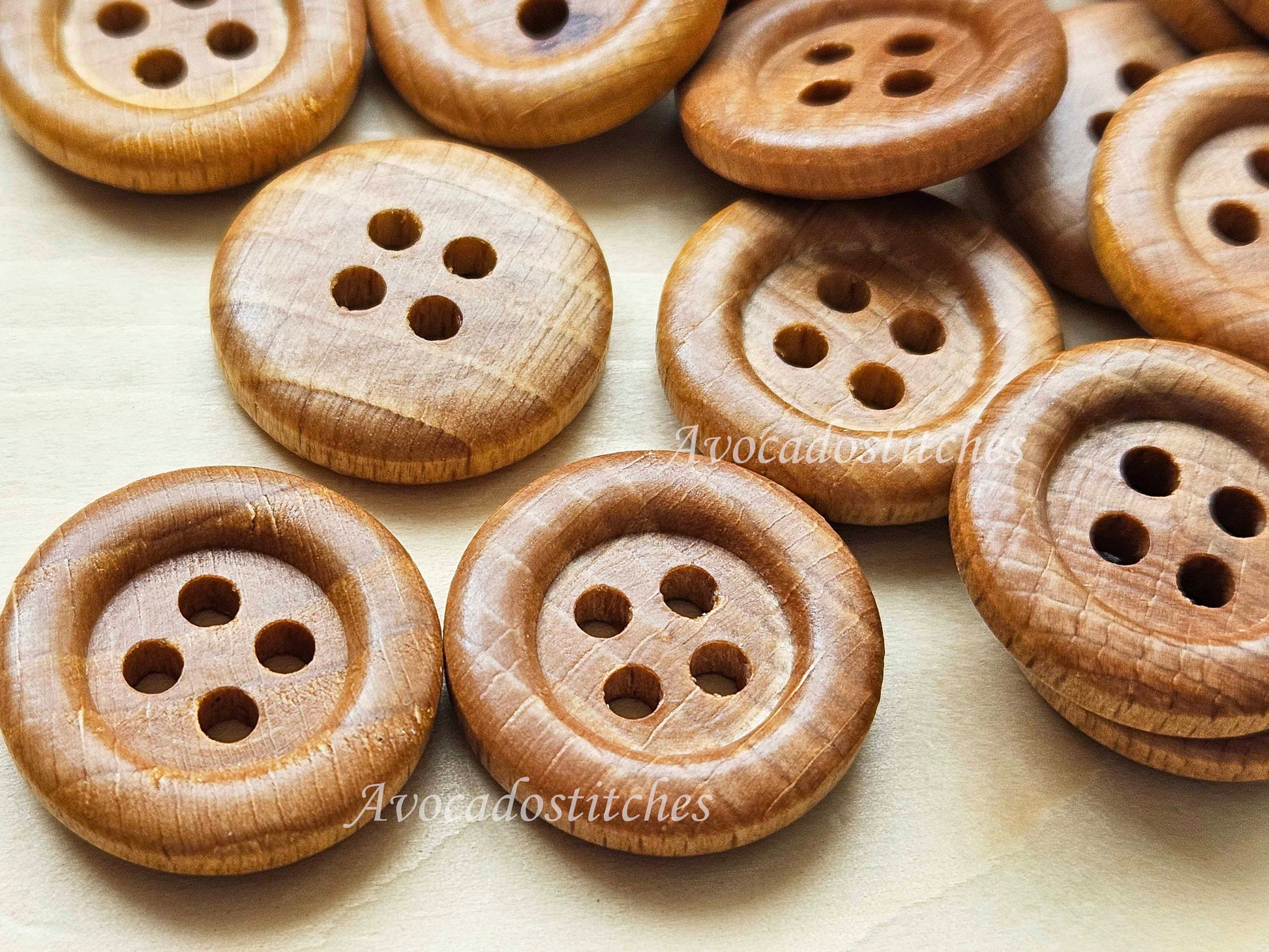 Made in Italy 4-HOLE CLASSIC BEECH WOOD / 23mm / Set of 4 buttons / Wooden Buttons / Sewing Buttons