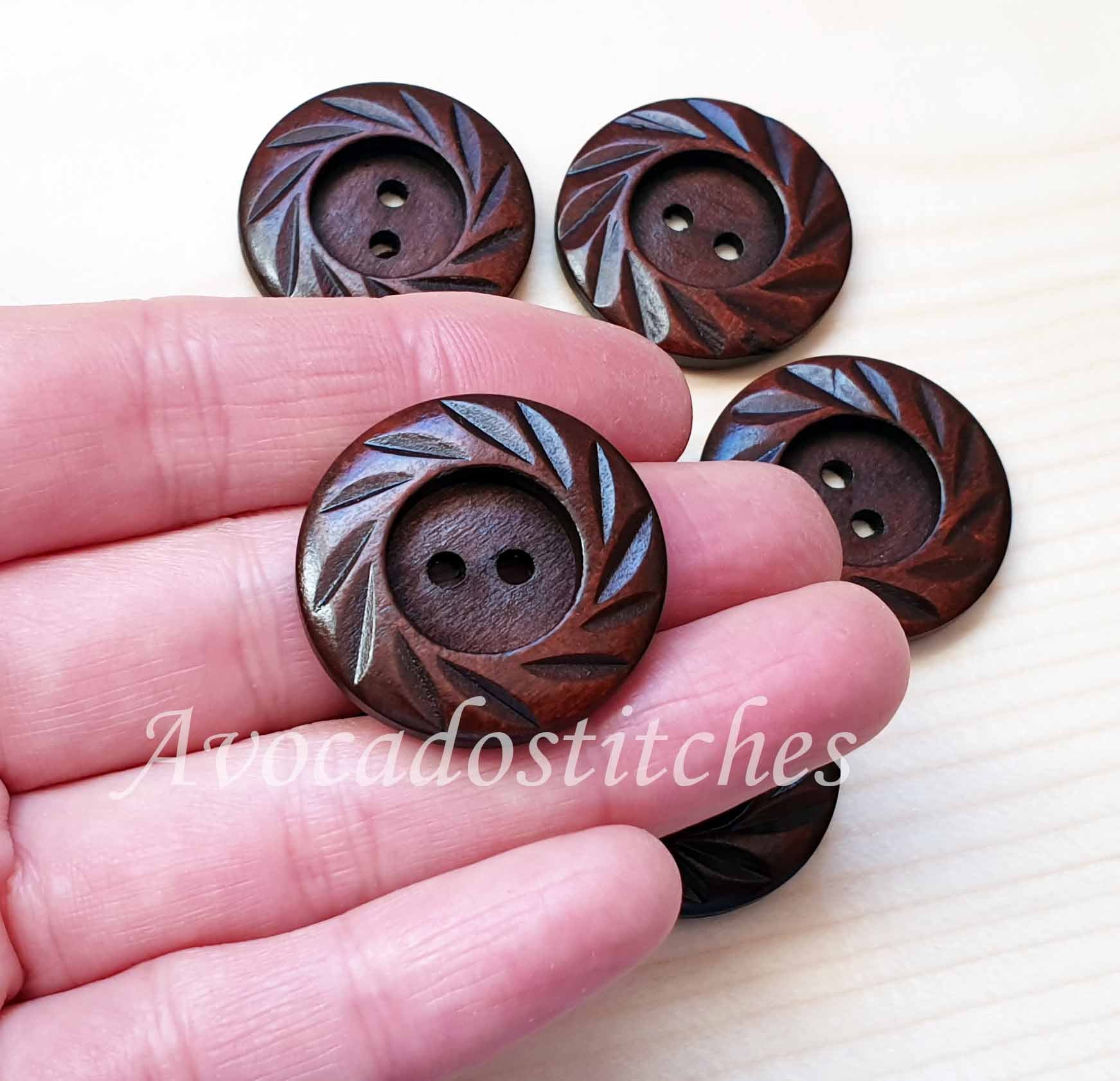 VINTAGE FOLIAGE / 30mm - 4 buttons / Wooden Buttons / Sewing Buttons