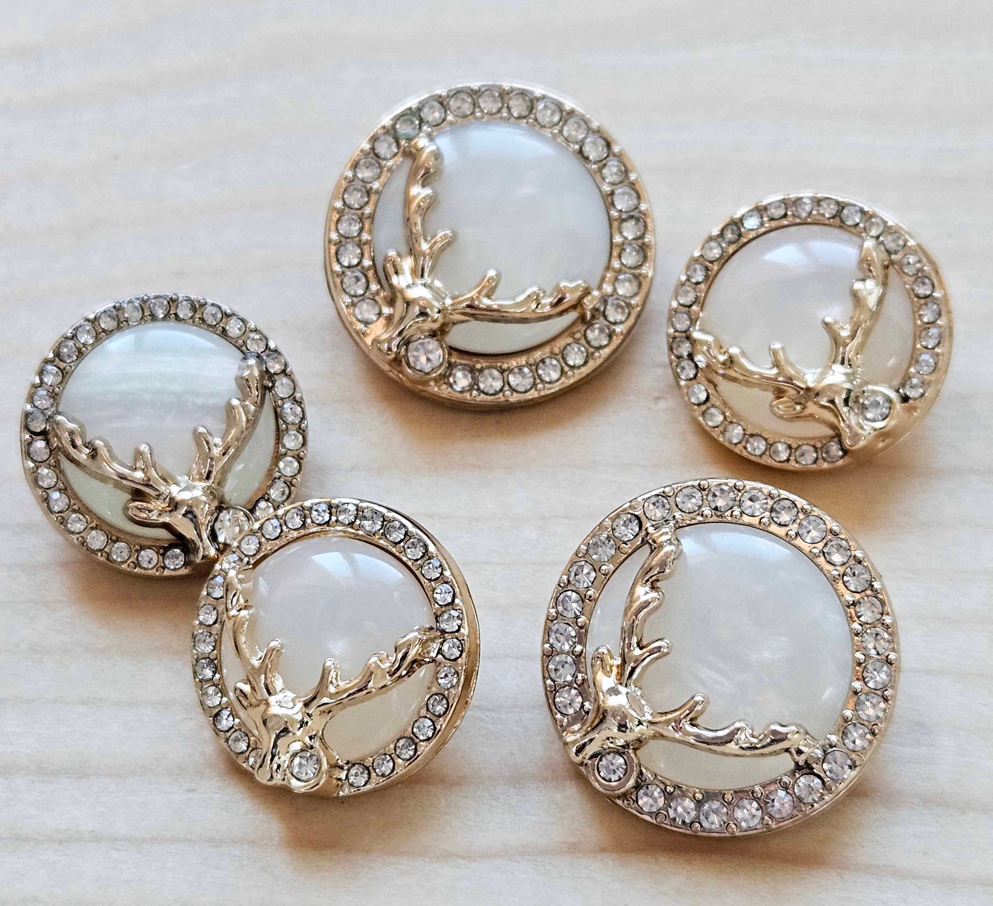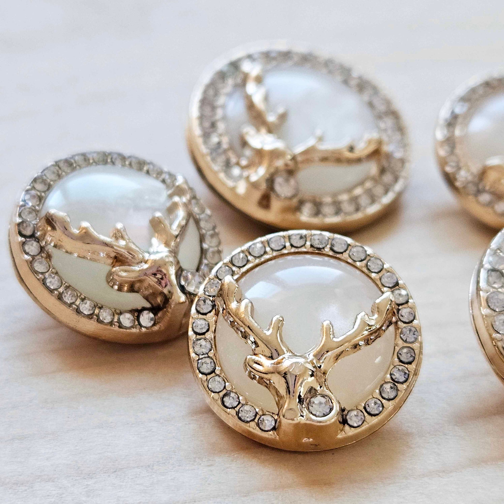 GOLDEN MOOSE / 18-22mm / Set of 2 buttons / Metal Rhinestone Shank Buttons / Sewing Buttons