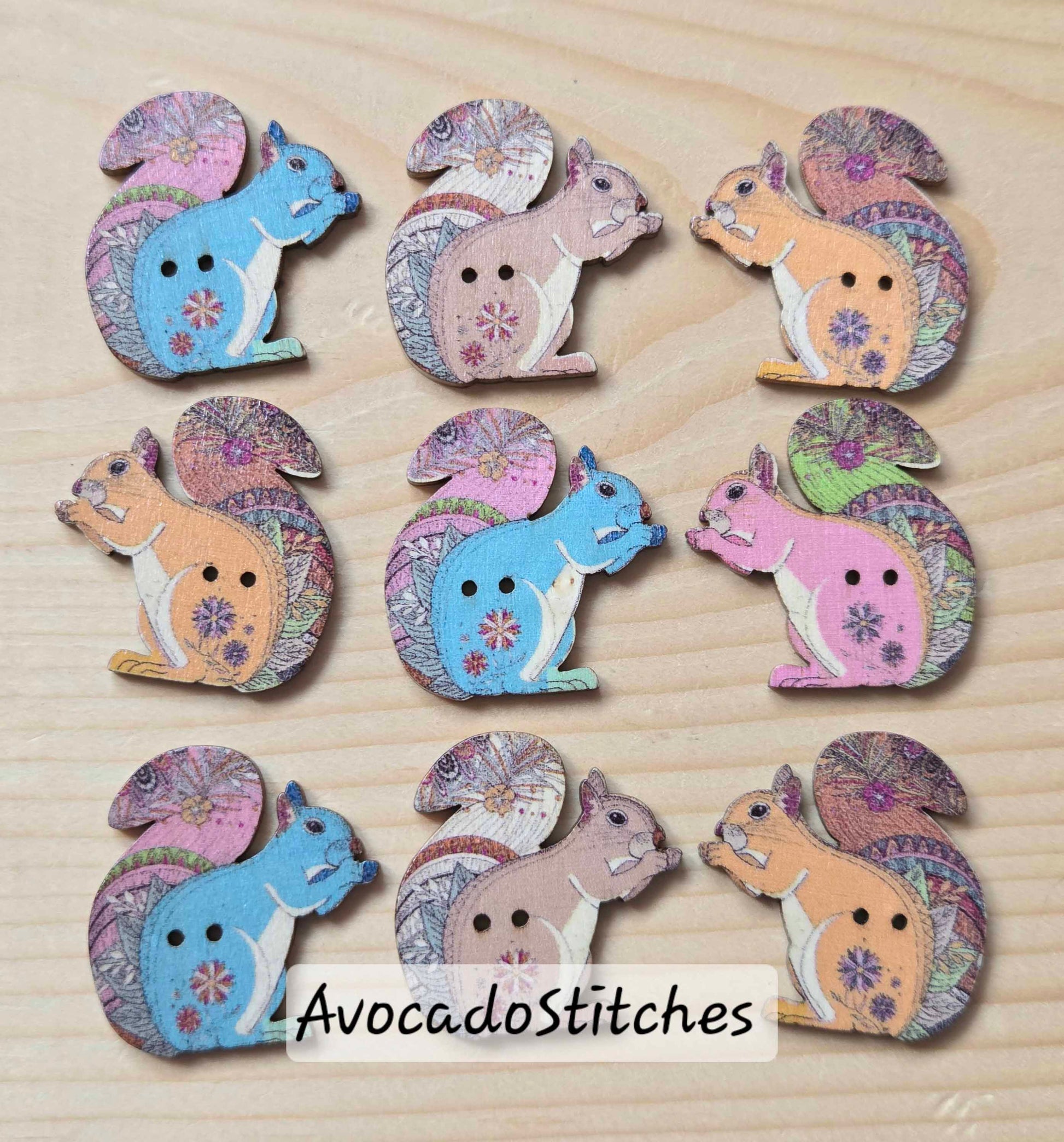 WOODLAND SQUIRREL / 28*30mm / 8 buttons / Wooden Buttons / Sewing Buttons