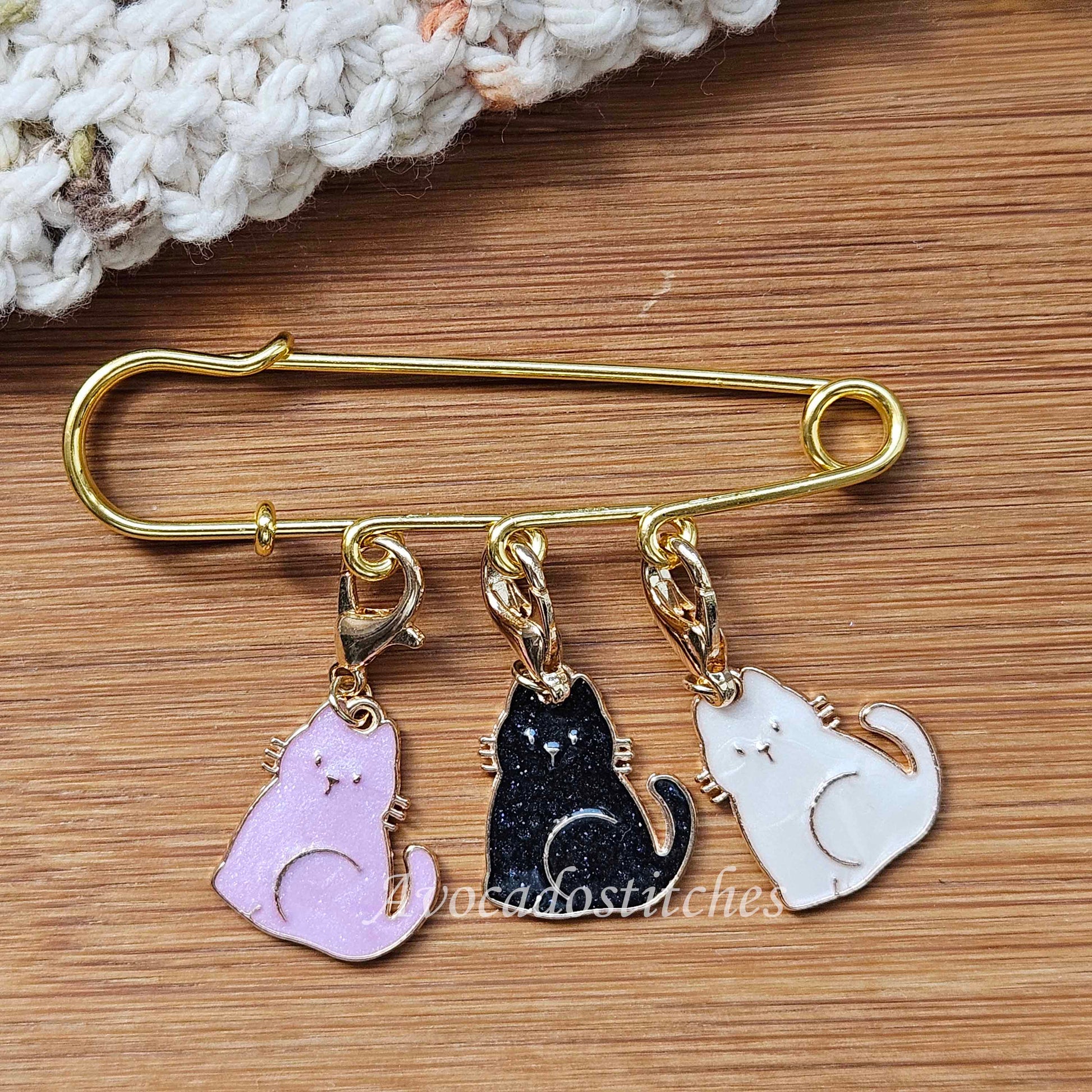 🐱 3 Removable Stitch Markers with charms (zinc alloy, with lobster clasps; fit up to 4.5mm knitting needles)
