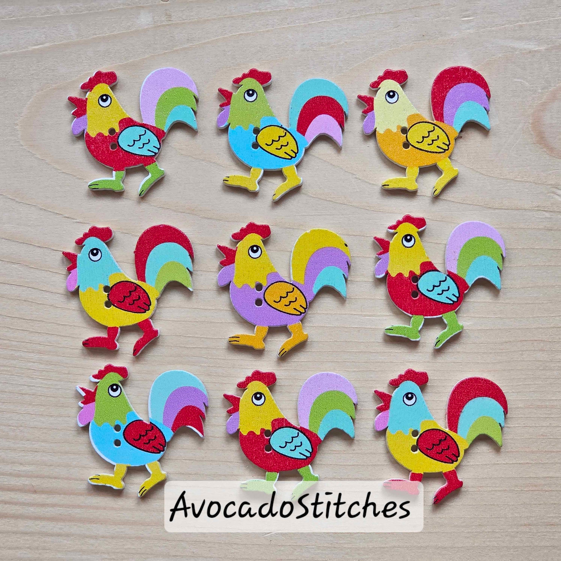 ROOSTER /32*32mm / 8 buttons / Wooden Buttons / Sewing Buttons