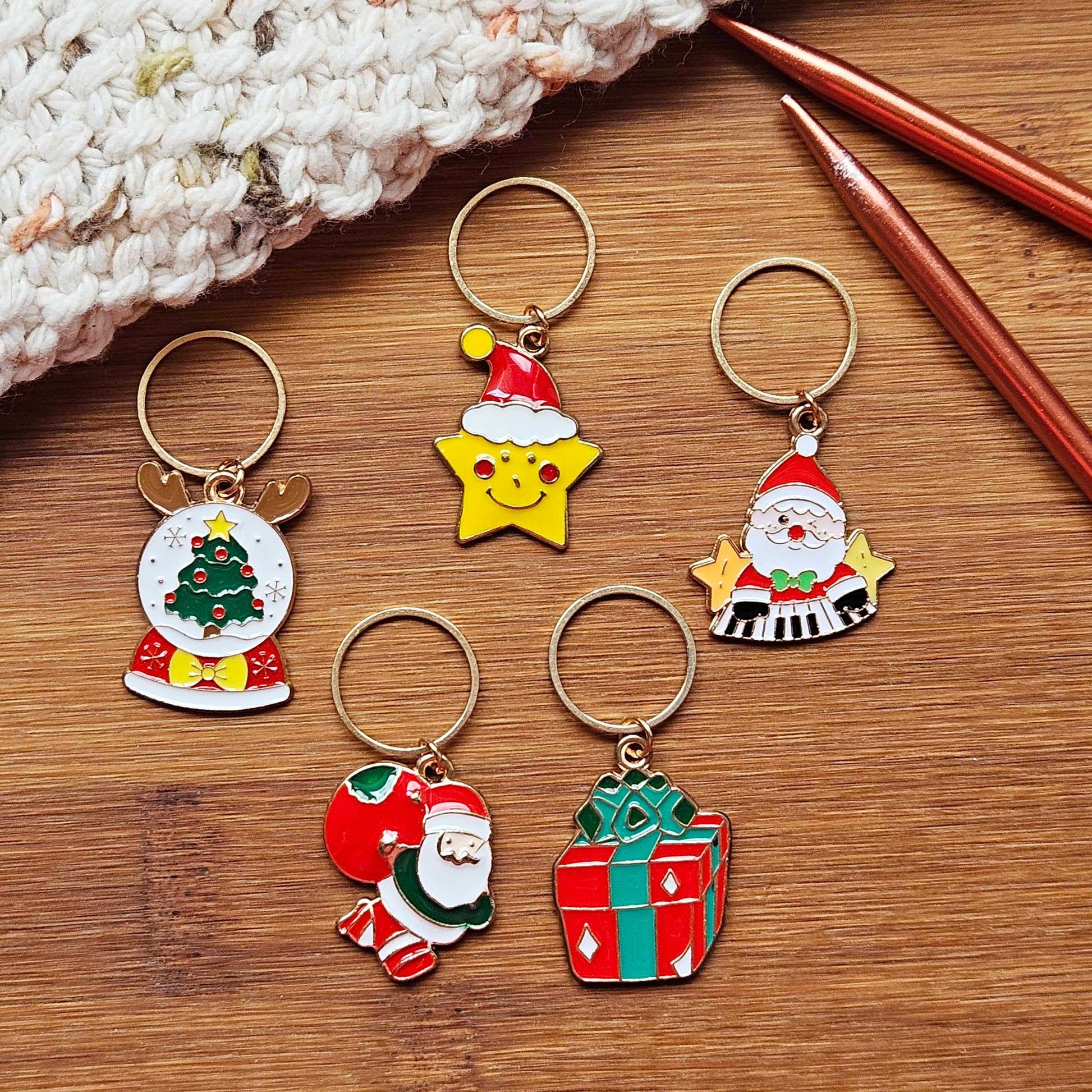 SANTA CLAUS - 5 pieces / Knitting Stitch Markers / Notions