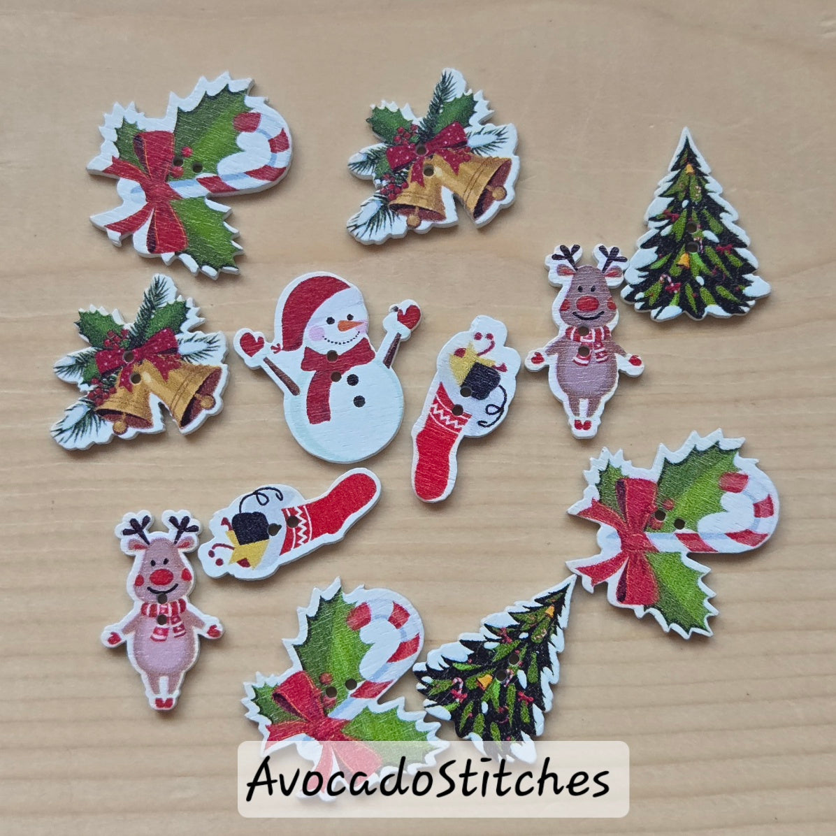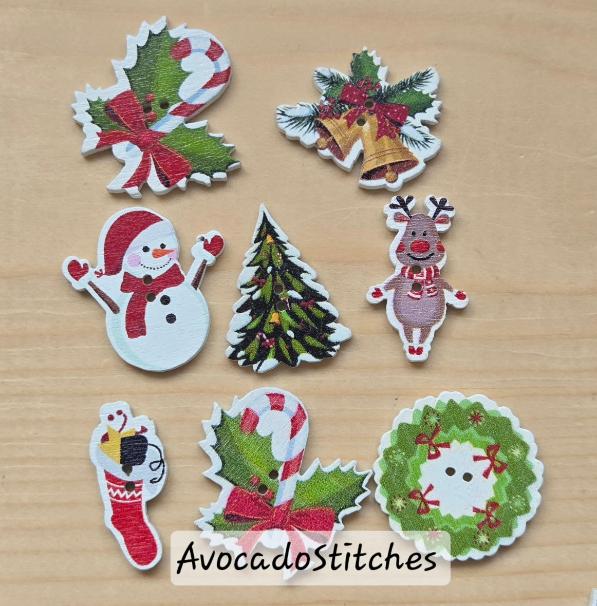 Wooden printed buttons.