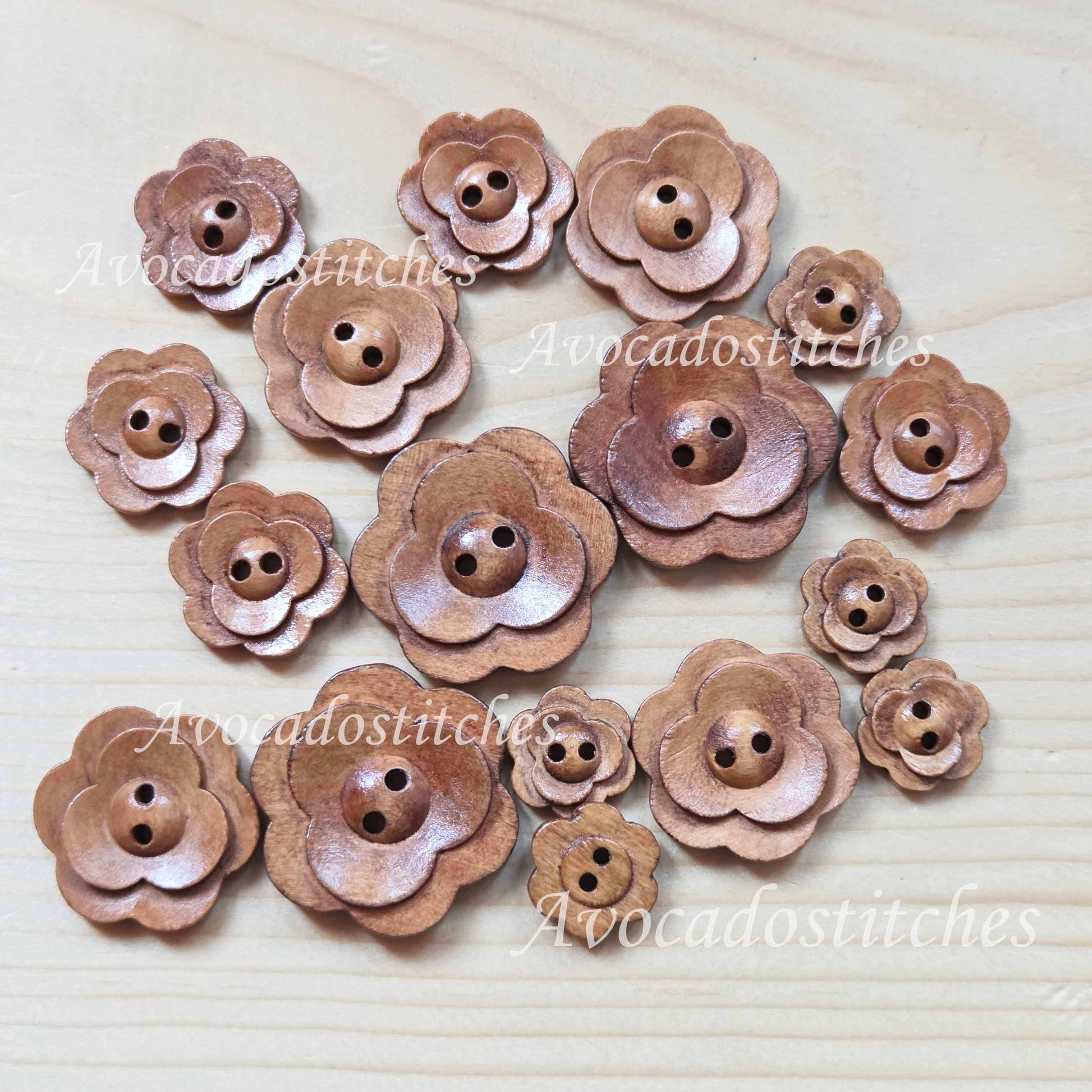 VINTAGE FLOWER Multi-Petal Brown / 15-35mm / Wooden buttons / Sewing Buttons