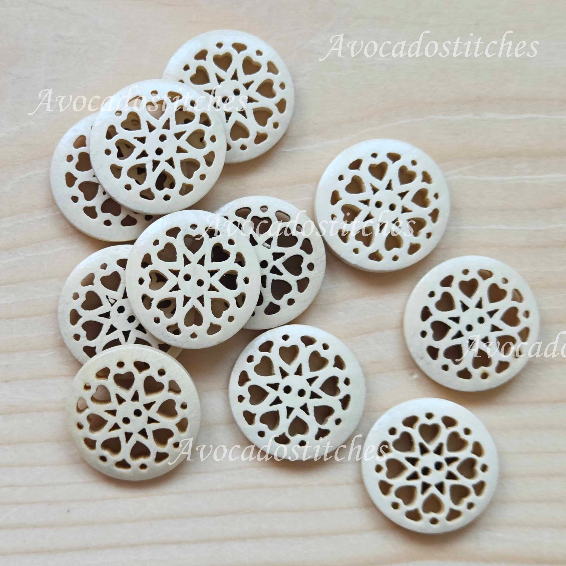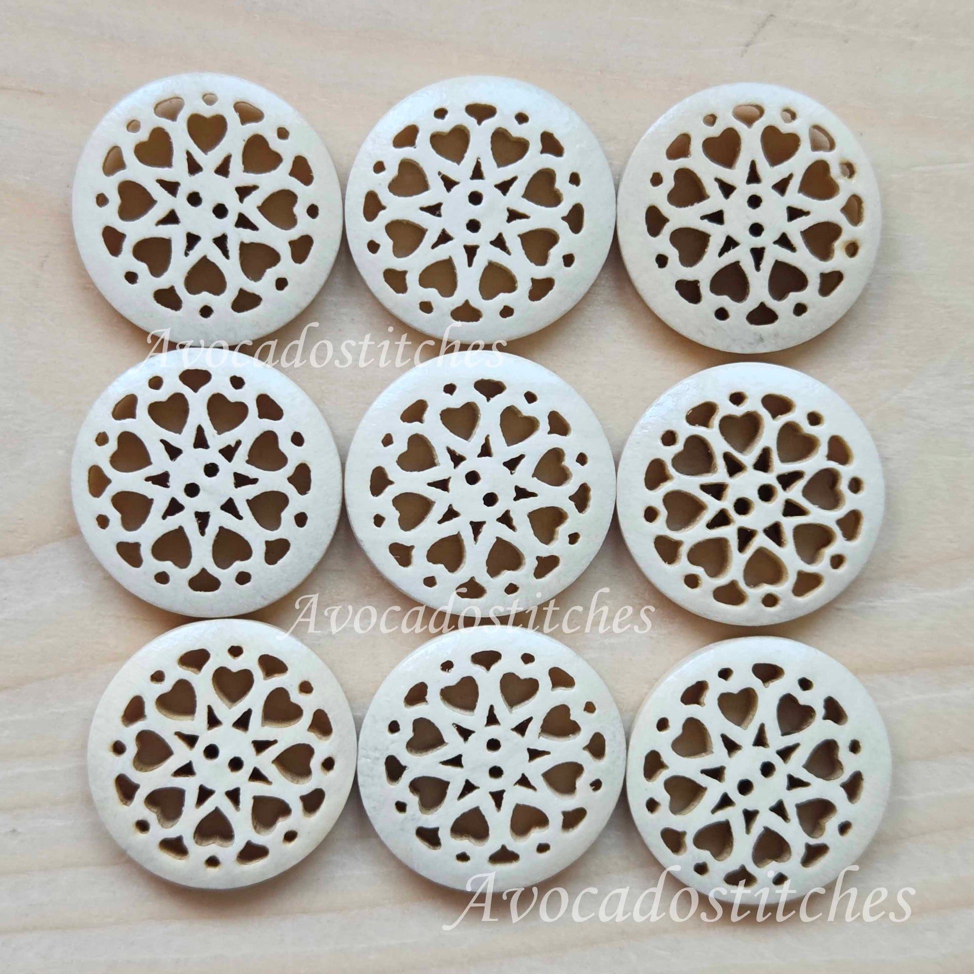 WHETU Beige / 20mm - 6 buttons / Wooden Filigree Buttons / Sewing Buttons (Convex)