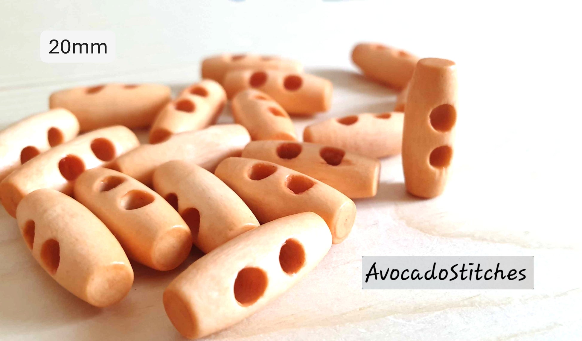WOODEN TOGGLE Peach Light Orange (Flat) / 20mm - 8 buttons / Wooden Toggle Buttons / Sewing Buttons
